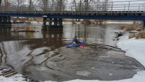 Mijam ujście Pszczynki, następnie Gostynki i po trzech godzinkach spokojnego płynięcia, dopływam do mostu w Nowym Bieruniu dokładając do swojego licznika przebytych kilometrów kolejną siedemnastkę. Chyba to było ostatnie pływanko tej zimy, no chyba że wiosna przyjdzie szybciej niż zima się skończy i jakoś mnie skusi do zejścia na wodę 😉