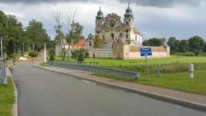 Jak już jednak bez wyjścia nie dam rady, to obejście zarośnięte jest gęsto wysokimi pokrzywami. Nie lubię, bee, a do tego całe mokre. Dobrze że chociaż deszcz po godzinie przestał padać. Minęły jeszcze dwie godzinki w podobnym tempie i okolicznościach i nad Wałszą pojawiła się most, z którego oglądałem rzekę przed południem. To Pieniężno. Okazało się , że reszta załogi transportowca też gdzieś tutaj w knajpce, ” grzeje” akomulatory” i suszy się w ciepłej restauracji, także zważywszy na nadciągające ciężkie czarne chmury i ja tu postanawiam skończyć dzisiejsze płynięcie. Niezły wynik – nieco ponad 15 km. w ponad 4,5 godziny. 🙁 . Miałem nosa by tu zakończyć, bo ledwo się przebrałem, a deszcz lunął i padał ponad godzinkę. Mogłem ją spędzić z resztą w miejscowej knajpce na rynku.