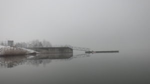 Wybrany akwen to jezioro Przeczyckie, a miejsce startu w linii prostej oddalone od sobotniego miejsca startowego zaledwie o cztery kilometry z małym hakiem, a jakże inne widoki. W Tuliszowie wprawdzie jest troszkę mgły, ale widzę drugi brzeg i widzę, że jezioro płynie. Płynie pod nurt zasilającej go Czarnej Przemszy. Płynę zatem tak jak w sobotę na Pogorii, w lewo, w stronę korony zapory by kawałeczek mieć pod wiatr, później z wiatrem i ostatni najdłuższy odcinek znowu pod wiatr. Przy brzegu troszkę lodu, ale spokojnie da się zejść suchą stopą 🙂