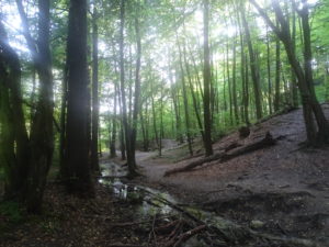 Dobrze że do biwaku jest tylko kilkadziesiąt metrów wiec dam radę 😉 . Rowerzyści też właśnie dojechali. Rozbijamy namiot i zaczyna padać. Nieco po szesnastej. Siedzimy sobie i myślimy czy będzie szansa na ogień. Po dwóch godzinach nadarza się taka okazja bo deszcz ustaje. Udaje się złożyć ogień, upiec udka i znowu zaczyna padać. Tym razem aż do rana, a nawet dłużej. Tak długo, że rezygnujemy z niedzielnych aktywności fizycznych ruszając do domu tuż po południu. 🙁