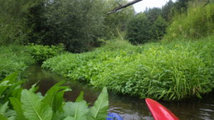 Za lasem, dziesięć kilometrów śmigamy ścieżką rowerową przez całe Tychy, co znowu nudzi nas na tyle, że skręcamy ponownie w las. Tym razem okolice jeziora Paprocany. No i znowu wtopa. Droga coraz węższa, przechodząca w ścieżkę, która z każdym metrem wygląda na coraz mniej uczęszczaną, a w końcu zanika. Fajnie, tyle że dziesięć metrów obok biegnie prawdziwa asfaltowa ścieżka rowerowa, po której co i rusz przemieszczają się rowerzyści i spacerowicze. Dlaczego my na niej nie jesteśmy? Rozdziela nas rzeka Gostyńka. Jest nawet pomysł, by ją pokonać brodząc, ale nie jest zbyt ciepło, a i wyjście i zejście do rzeki mało ciekawe. Wracamy w końcu tą samą drogę na właściwą ścieżkę przez las.