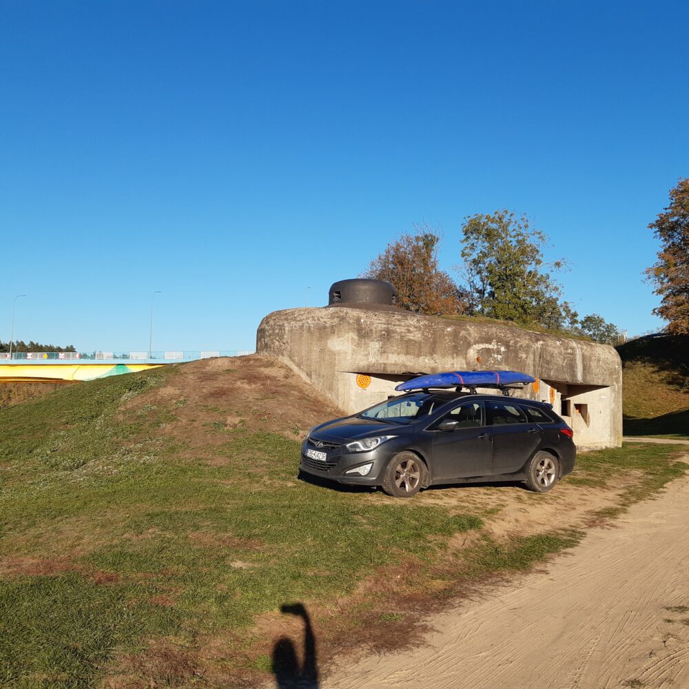 Płynęło się aż tak fajnie, że przez chwilę przyszło mi do głowy, że mógłbym popłynąć dalej – do Wisły i może nawet do morza zwłaszcza że mam urlop i do pracy wracam dopiero 28 października. No ale kajak nie ten, bagażu biwakowego brak, i na jutro przed południem mam bilet na samolot do nieco cieplejszego kraju niż nasz ;-). Zatem szybki obiadek na masce samochodu, focia miejsca mety i start w stronę domu