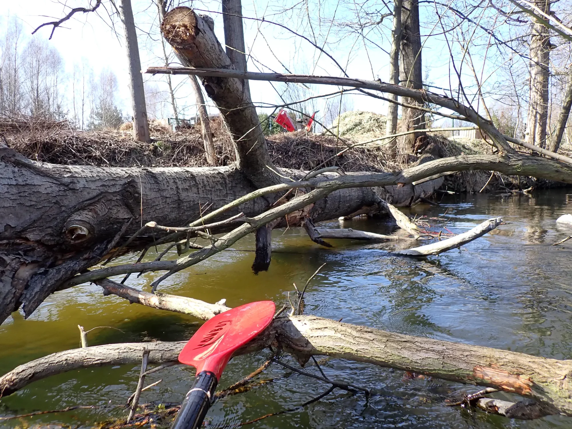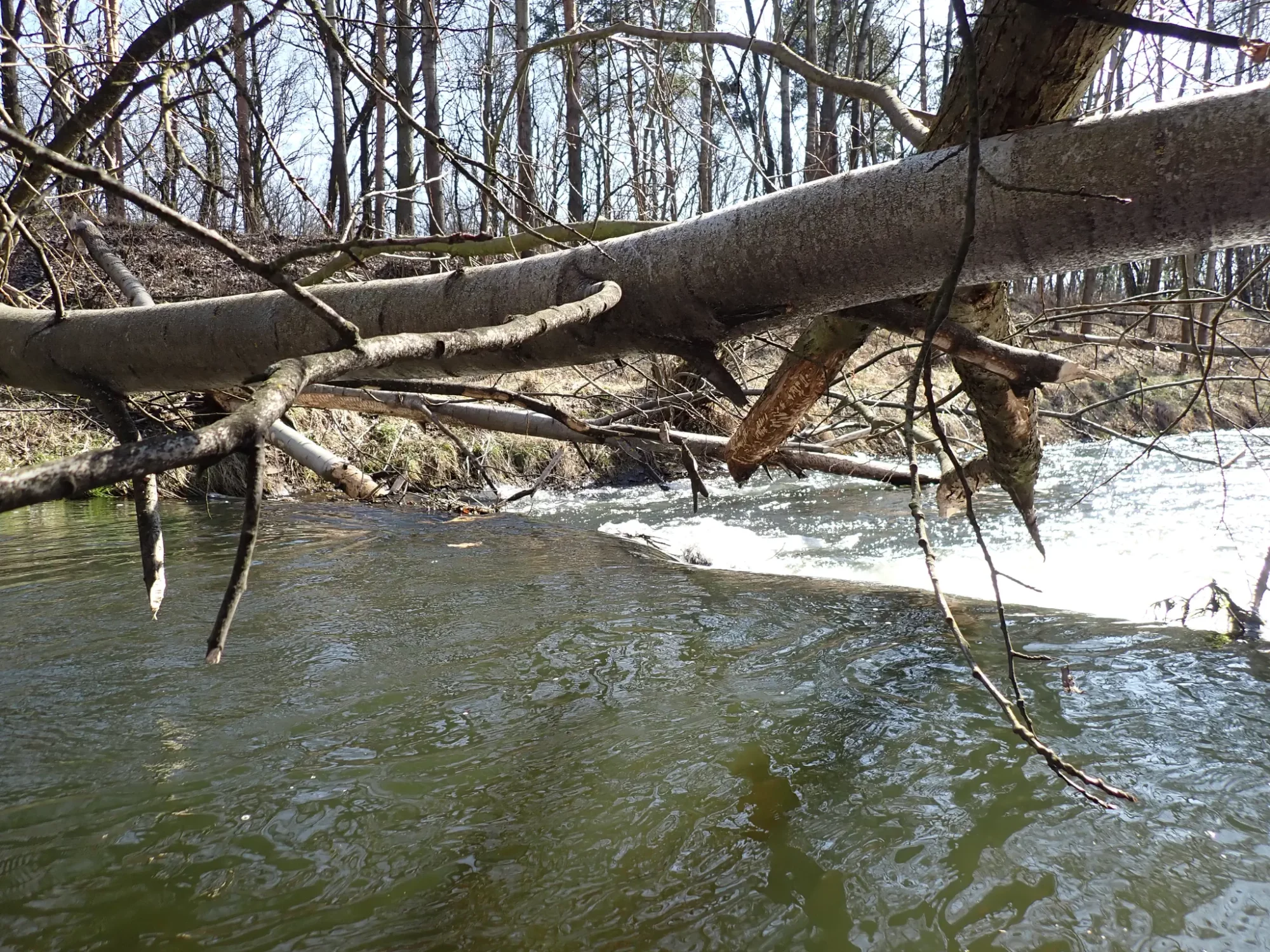 Na blisko sześciokilometrowym odcinku płynącym wzdłuż Pogorii czwartej dostrzegam kolejny plus. Tym razem to plus wysokich wałów między którymi Czarna Przemsza toczy swe wody, a na których wspierają się powalone drzewa, które dzięki tym wałom nie zagradzają swobodnego przepływu torem wodnym.
