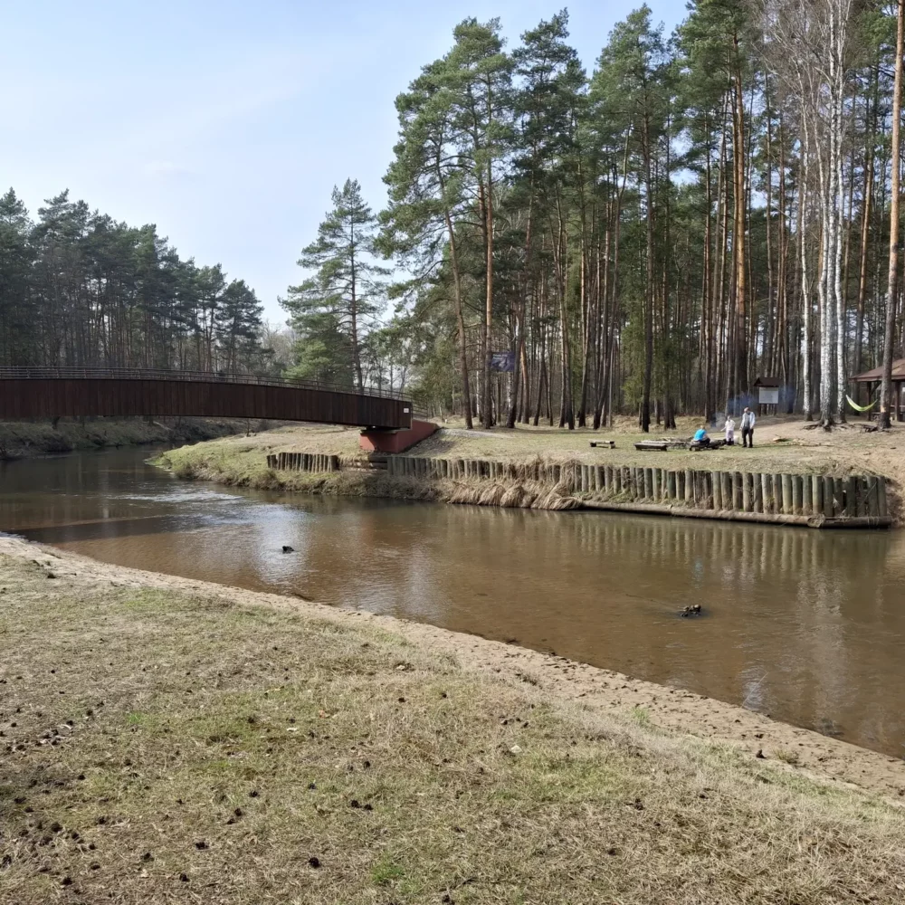 Ruszamy dalej. Mijamy most przy którym ostatnio kończyłem spływ, drugi most i na koniec kładka obok Zameczku Myśliwskiego „Malepartus”. Wszystkie mosty w granicach Zawadzkich a przy kładce kończymy dzisiejszy etap. Miejsce ogniskowe obok wiat zajęte przez parkę z córką i ładnym pieskiem. Nie widzą oni jednak problemu byśmy i my skorzystali z tego miejsca. Grzejemy zatem kiełbaski i po godzinnej przerwie odjeżdżamy na miejsce noclegowe.