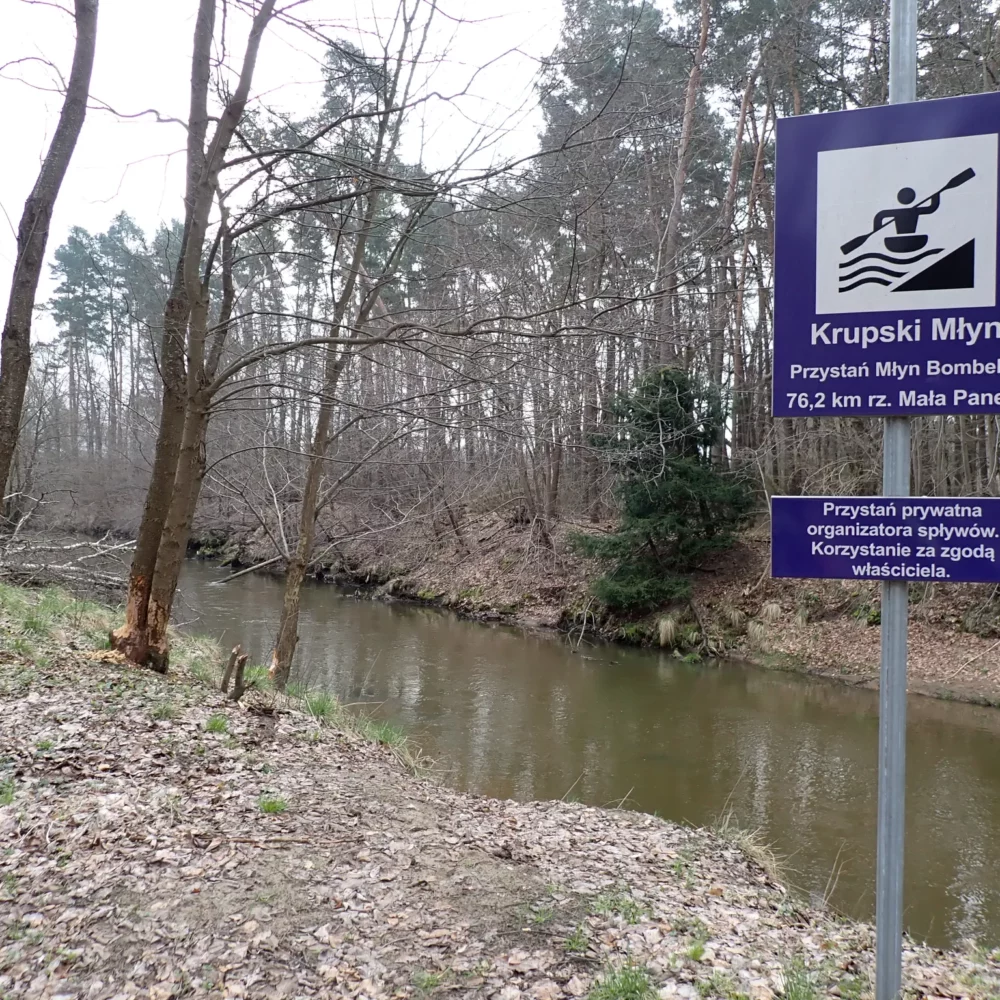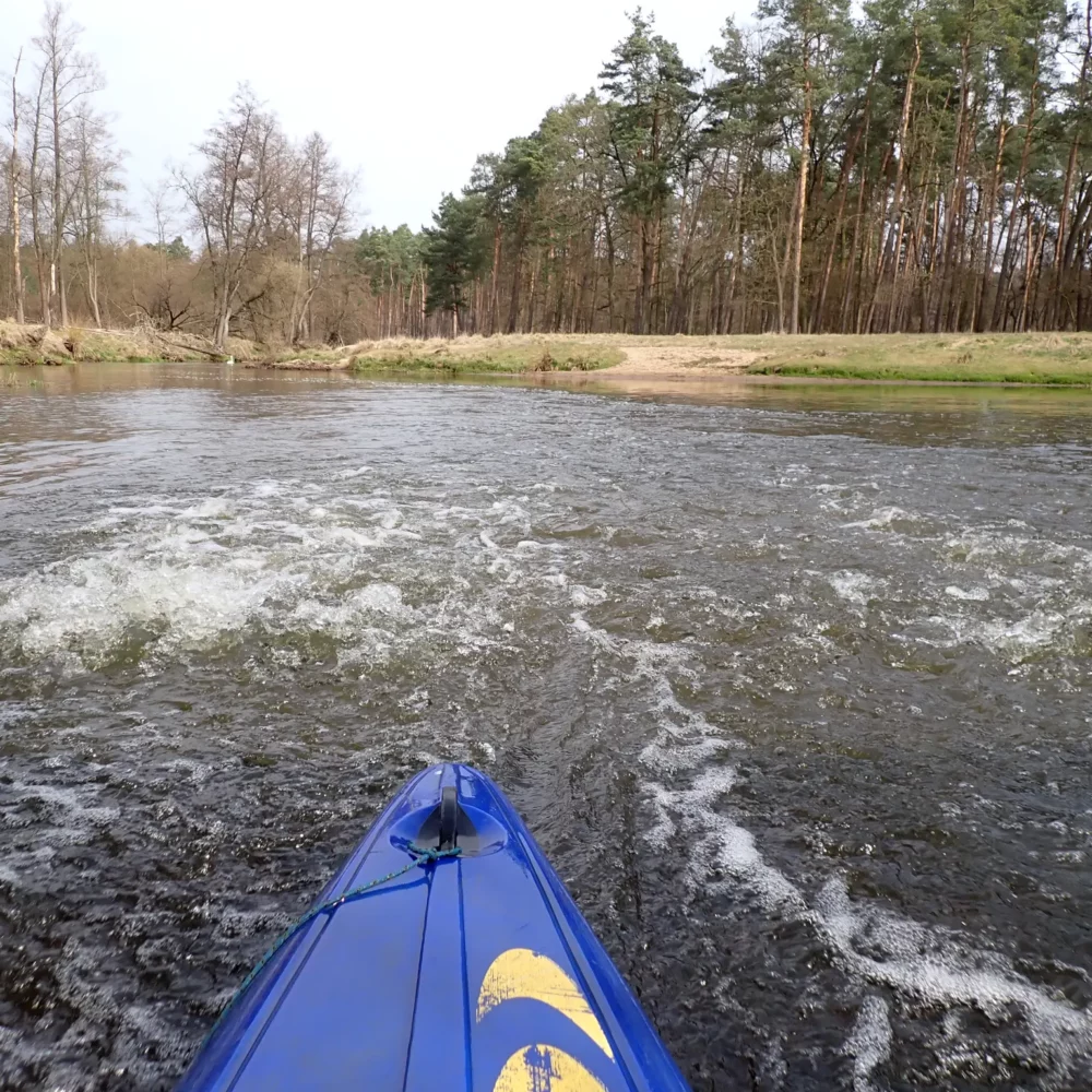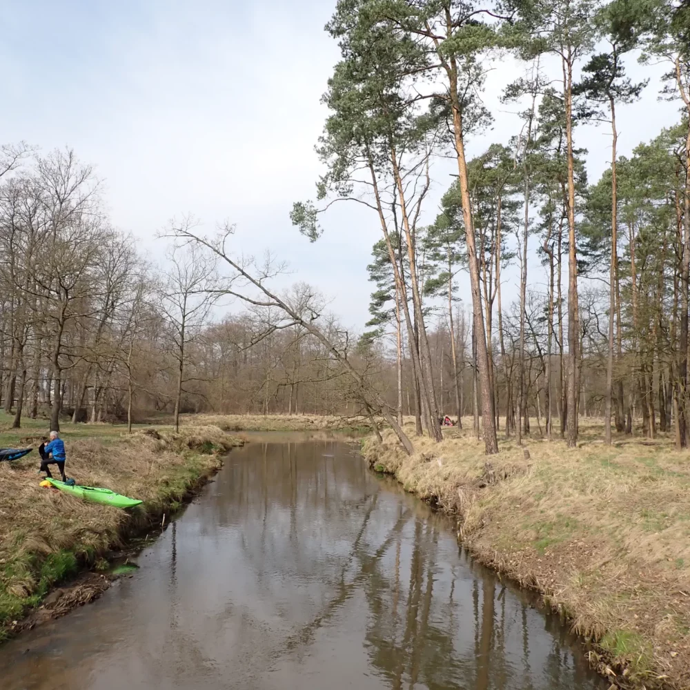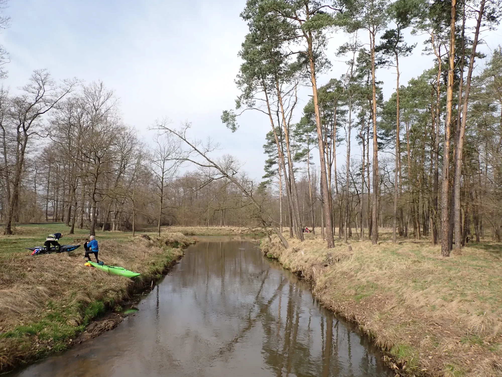 Nieco ponad czternaście kilometrów, podczas których musimy obnieść wysoki próg przy młynie Thiel, przy którym okazuje się, że mimo powszechnie panującej suszy, tutaj nie jest jeszcze tak źle i możemy za przenoską wystartować jeszcze przed mostem, co nie zawsze było możliwe ( wodowskaz w Krupskim Młynie 30 cm.).