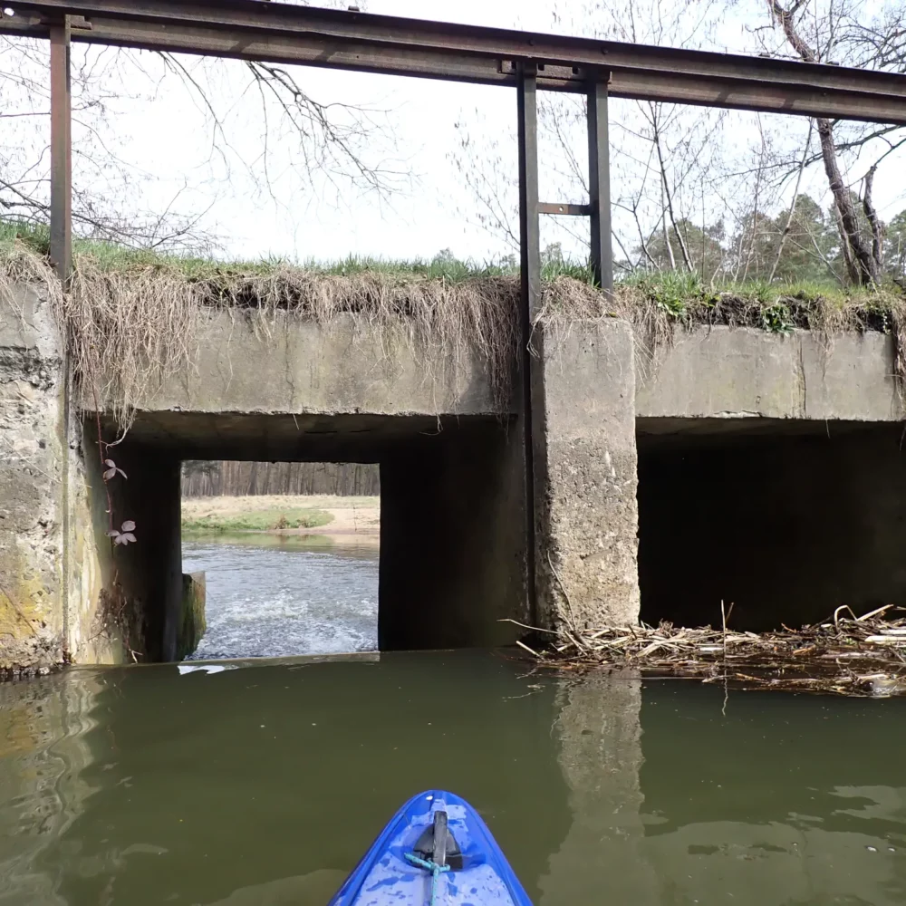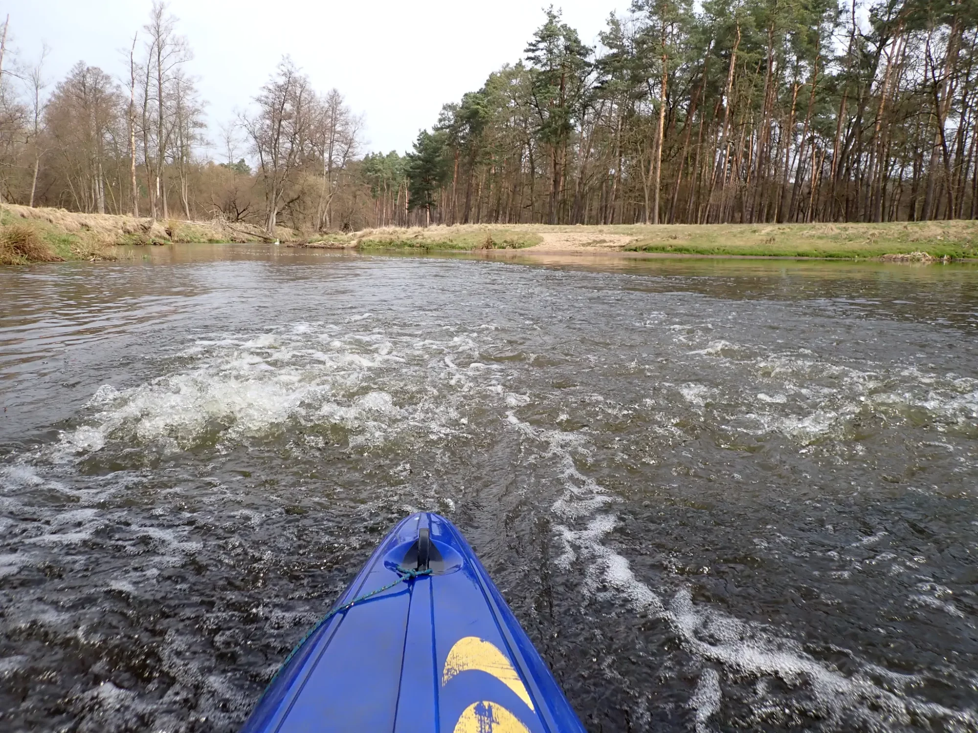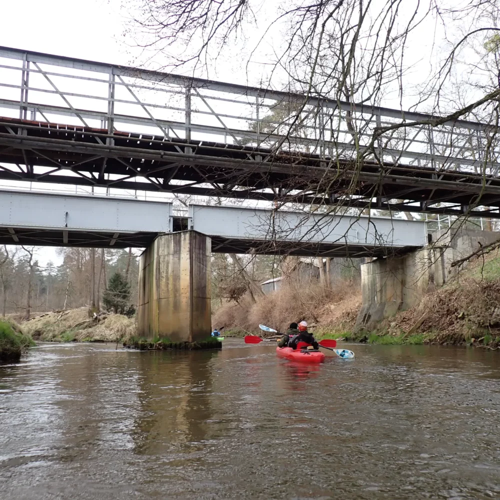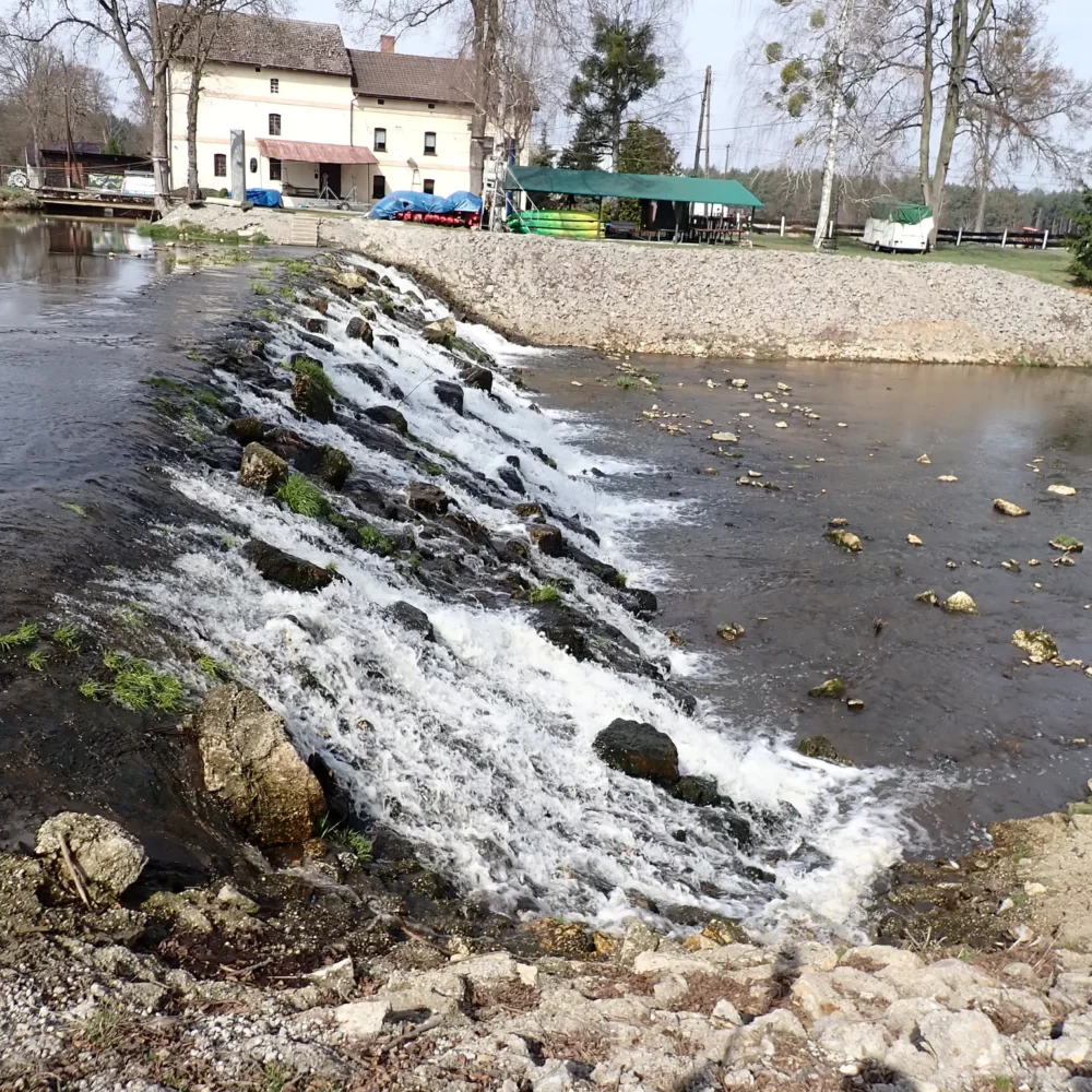 Nieco ponad czternaście kilometrów, podczas których musimy obnieść wysoki próg przy młynie Thiel, przy którym okazuje się, że mimo powszechnie panującej suszy, tutaj nie jest jeszcze tak źle i możemy za przenoską wystartować jeszcze przed mostem, co nie zawsze było możliwe ( wodowskaz w Krupskim Młynie 30 cm.).
