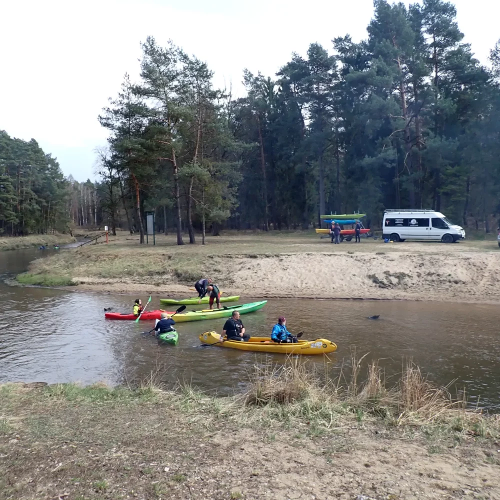 W Młynie Bombelka, który będzie naszą przystanią w ten weekend melduję się po dziewiętnastej. Dziwna cisza , mało aut, z kajakiem na dachu tylko jedno. Czyżbym coś pomylił? Datę? Napotykam właściciela obiektu który wyprowadza mnie z niepewności, informując że ludzie mogą być przy ognisku za domem. No i faktycznie słyszę głosy i widzę ogień. Po drodze do miejsca z ogniem stoi kilka kamperopodobnych pojazdów w których będą mieszkać niektórzy uczestnicy. Ustawiam się i ja moim kombiakiem, tu będę miał cichutko w nocy :-). Przy ogniu kilkanaście osób, grzeją się kiełbaski i ziemniaki w sreberku. Szybko łapię się na ciepłe danie i wraz z ekipą idę pod dach, do większej ciepłej przestrzeni. Tu pełna integracja około trzydziestu uczestników, kolacja koszyczkowa i taneczna muza dla zainteresowanych, a po północy nocne Polaków rozmowy. Jak to na spływie , nocka mija mi bardzo szybko, nie marznę w kombiku choć temperatura ledwo przekracza zero stopni Celsjusza. O dziewiątej zbieramy się do spływu. Na niebie słonko , temperatura osiem stopni na plusie. Ruszamy dziś od młyna i płyniemy do Zawadzkich.