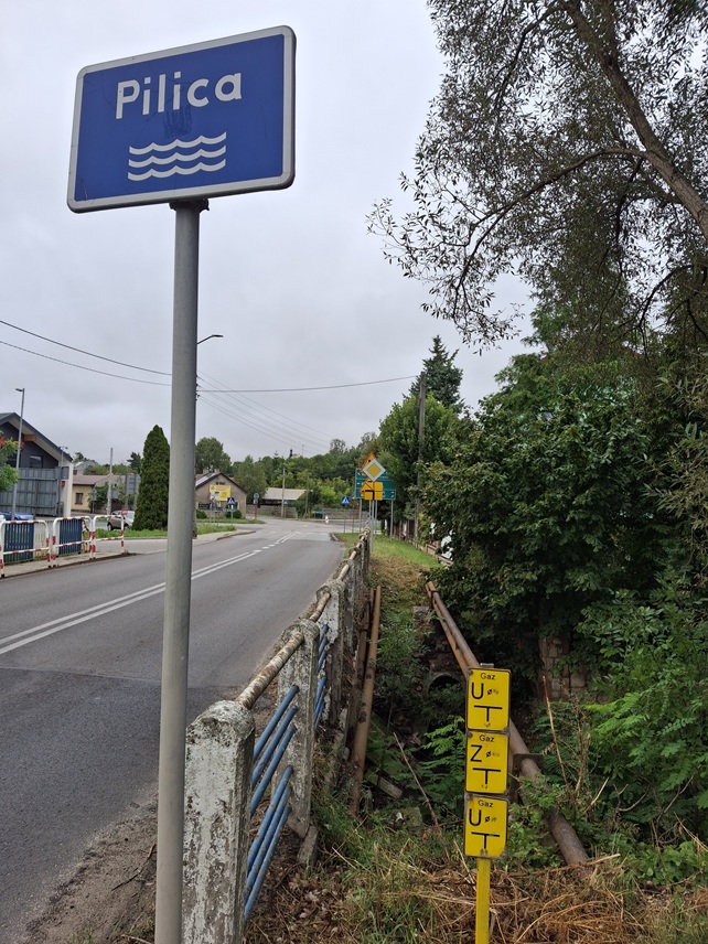 Sobotni poranek mocno pochmurny i chłodniejszy od poprzednich na tyle że wchodzę w długie spodnie i kurtkę rowerową. Gotowy do wyjazdu dostrzegam brak powietrza w przednim kole. Shit. Muszę rozpakować bagażnik, by dostać się do potrzebnych narzędzi i wymienić dętkę. Dobrze że mam. Po udanym remoncie 😉 ruszam po dziewiątej i jadę normalnymi drogami na których co jakiś czas pojawiają się oznaczenie mówiące, że jestem na trasie rowerowej. Mijam kapliczkę św. Piotra w Pukarzowie, pałac w Radoszewnicy dalej Koniecpol, tablicę miejscowości Bógdał 🙂 i dalej Szczekociny. Robię fotki co ciekawszych miejsc , słońca nie widać a temperatura 16 st.C. Teraz można by śmignąć prosto do Pilicy, około 25 kilometrów, ale rzeka zatacza łuk wydłużając trasę o jakieś dziesięć kilometrów. Przed Żarnowcem podjeżdżam specjalnie na most na Pilicy by zobaczyć jak tutaj wygląda. Nie szersza jak trzy metry i w kolorze kawy z mlekiem. Musiało tu wczoraj popadać mocniej niż na mojej trasie. I dobrze choć czy na pewno? Wjeżdżam w drogę ze znakiem droga bez przejazdu, no ale czy to po raz pierwszy. Znak dotyczy pojazdów samochodowych a rowerem na pewno dam radę. Utwierdzam się w tym przekonaniu jeszcze bardziej gdy bez ostrzeżenie wyprzedza mnie jak strzała rowerzysta z sakwami i namiotem. Jest tylko skinięcie głową i nic się nie dowiem 🙁 Nie gonię go, jadę swoim tempem, aż z drogą robi się coraz gorzej. Koniec asfaltu, polna dróżka i nagle zalewisko. Na środku między zalanymi koleinami trochę trawy, ale i spore błotko. Doganiam rowerzystę, nie ma jak ominąć na sucho to miejsce. Jedyna wymiana zdań to pytanie o alternatywę szlaku. Mapy wskazują, że za czterysta metrów jest jakieś skrzyżowanie, a w nie dalekiej odległości słychać dźwięk syren auta uprzywilejowanego. Widzę że gostek rusza środkiem dróżki prowadząc rower po zalewisku. No nic, w zamoczonych sandałach dużo wody mi nie pozostanie ;-). Idę za nim, powolutku, pomalutku, skarpety mokre , znowu widzę gostka. Stoi za następnym rozlewiskiem i krzyczy do mnie, że koniec zalewisk. Czyli jeszcze jakeś 100 – 150 metrów. Ok. Pokonuję to nie fortunne miejsce i mogę jechać. Po polu z trawiastym podłożem. Kilkaset metrów i znowu widzę kompana mej niedoli 😉 , tym razem do pokonania mamy kilkunastometrowy świeżo przeorany pas pola uprawnego. Przeprowadzamy rowery, dalej można znowu podjechać kilkadziesiąt metrów i do pokonania jeszcze jeden pas zaoranego pola. Widziałem jak przeprowadził rower, a mnie udaje się pokonać bez schodzenia z roweru. Ha :-). Wybieram prawą stronę rzeki i jadę mając ją w związku z tym po prawej stronie ulicą Długą tak z nazwy jak i rzeczywistości aż do miejscowości Pilica. Najpierw zaglądam pod most pod którym trochę wody płynie, nie za dużo i nie zanieczyszczona deszczówką. Dalej wizyta na miejscowym rynku, odwiedziny mostu z zastawką regulującą spust wody z zalewu. To miejsce od którego bardzo dawno temu popłynąłem z bagażem swoim starym szklakiem w ciągu dwóch dni do Koniecpola. Dziś to byłoby nie możliwe. Mało wody. Jadę do źródeł fotografując ładny zabytkowy renesansowy pałac będący szkołą. Gdy odjeżdżam zza ogrodzenia widzę na szkolnym dziedzińcu kierunkowskaz z zaznaczonym kilometrażem oddzielającym to miejsce od wielu znanych miast na świecie. I co? I muszę wrócić zrobić mu zdjęcie bo jest kilometraż do Toronto w Kanadzie w której byłem z tydzień wcześniej. Dystans 6972 km. 🙂 No i dojeżdżam do mostku przy którym wbita jest w wyschnięte koryto tabliczka z napisem źródło Pilicy. Smutny widok, bo nie wypływa tu ani kropla wody. Mam wrażenie że prawdziwe źródła znajdują się kawałek dalej, tylko nie bardzo da się do nich dotrzeć. Tak myślę bo pod mostem oddalonym około czterysta metrów od oznaczonego źródła , coś tam już płynęło. Miałem w planie wlać w siebie u źródeł Pilicy wareckie piwko, ale nastrój nie ten. Zostawiłem je sobie na metę do której już nie daleko. Wszak już po siedemnastej. Fajną dróżką przez las pośród jurajskich skał dojeżdżam w rejon gdzie na mapie widzę ciekawą nazwę „Tunel w Dupnicy”. Koniecznie chcę to zobaczyć. Rowerem nie da się dojechać zbyt blisko. Próbuję dojść ale też nie daję rady trafić. Późno jest. Odjeżdżam nie pocieszony, ale szybko smutek 😉 mija bo pojawiają się w bliskiej odległości ruiny strażnicy w Ryczowie. Tam dojeżdżam i nadziwić się nie mogę którędy wchodzili tam ówcześni budowniczowie tego miejsca. Dalej jadę w stronę Żelazka i do miejsca gdzie znajduje się zbiorowa mogiła poległych podczas pacyfikacji Ryczowa. Dalej przez lasy i zaczyna się stromy zjazd po kamolkach. W pewnym momencie pięć metrów przede mną przeskakuje z szybkością odrzutowca, dzik. No jakby tak rypnął we mnie to chyba odleciałbym na kilka metrów takie miał tempo. Kończy się las, muszę znaleźć miejsce na nocleg, bo za chwilę dojadę do DK 791 i będzie po spaniu. Akurat trafia się dość widokowe miejsce. W oddali dostrzegam kominy Huty Katowice, w drugą stronę góry, możliwe że to nawet Tatry na tle Beskidów . Ładnie . Nad głową co jakiś czas samolot startujący z Balic i księżyc już prawie w pełni. Przejechałem dziś 93 kilometry. Jutro do domu.