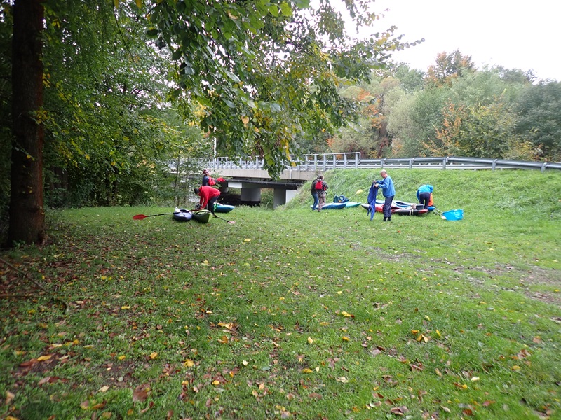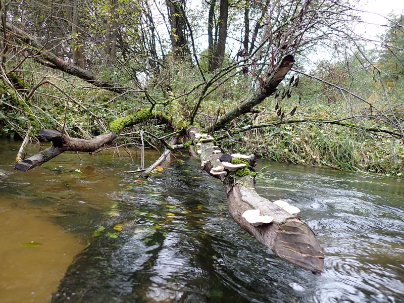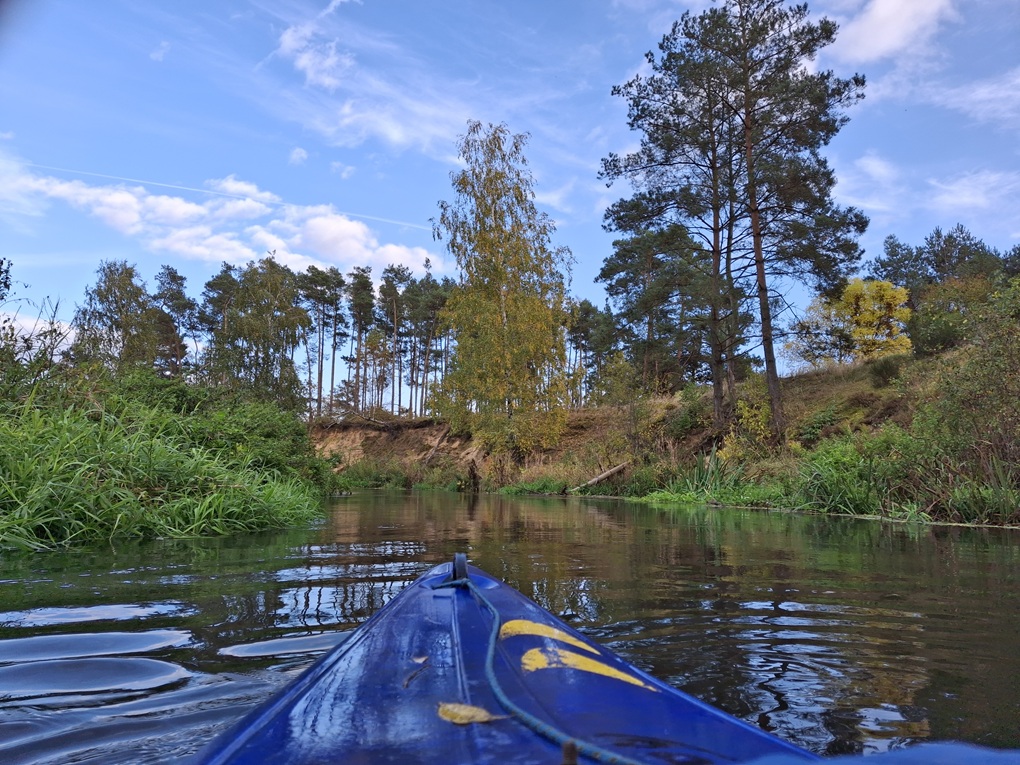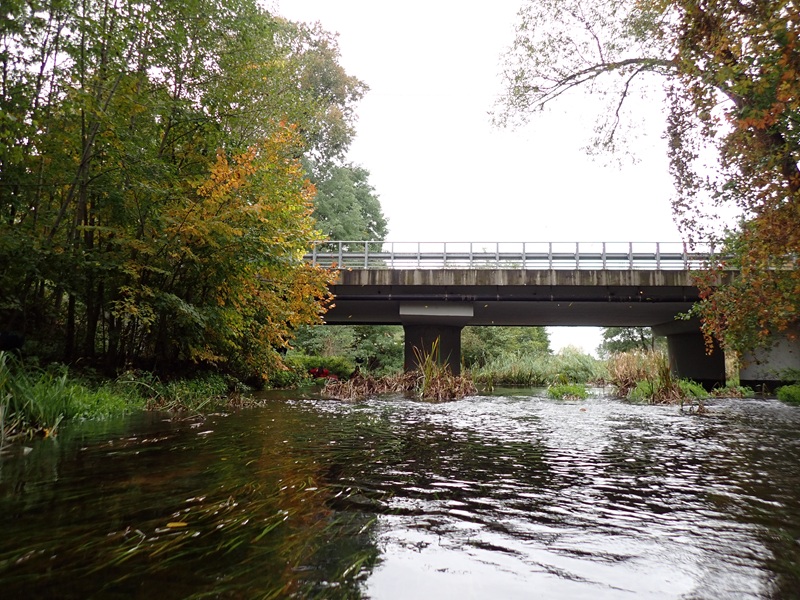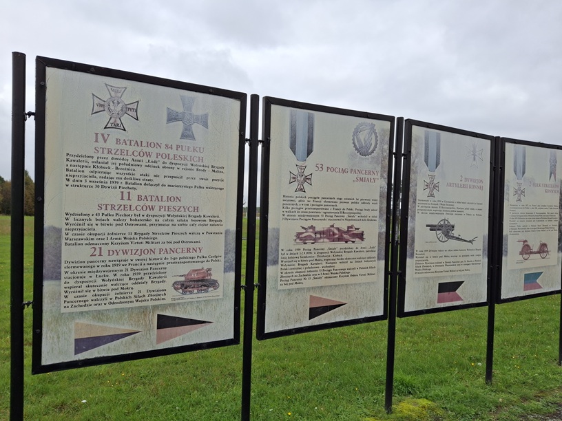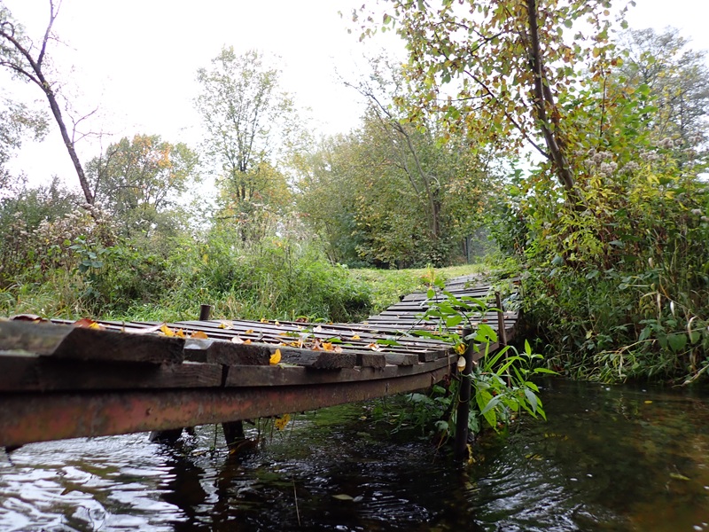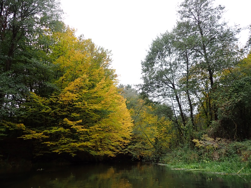 Po wczorajszym demokratycznym 😉 głosowaniu okazało się, że w niedzielę odbędą się dwa oddzielne spływy. Część ludzi przypłynie do naszej bazy w Kulach Wartą, a druga część, ta w której jestem ja i sześcioro innych śmiałków na jedynkach, również do Kul, ale poprzez Kocinkę, Liswartę i ponad sto metrów Warty. No to Liswartę (1,8 km.) za ujściem Kocinki przepłynę w tym roku drugi raz, a te ponad sto metrów Warty już nawet po raz trzeci :-). Na start do Kuźnicy dojeżdżamy pół godziny przed południem i bez wahania szybciutko wodujemy kajaki. To znaczy ja bez wahania, dzięki czemu jestem pierwszy na wodzie i jako pierwszy już po kwadransie jestem przy jazie starej elektrowni wodnej przy której nie dostrzegam dogodnego miejsca do obniesienia przeszkody. Trochę się musiałem pogimnastykować by wdrapać się na mostek i po murku i pokrzywach zejść na drugą stronę. Leżało tam (po lewej stronie) nawet takie drewniane koryto, które pewnie przy wyższej wodzie mogłoby posłużyć jako taka jakby zjeżdżalnia dla kajaka, no ale dziś woda po nim nie płynęła, a wejście na mokre drewno z którego było wykonane , mogłoby się skończyć poślizgiem i upadkiem. Dogonił mnie Boguś S. no ale on jest jeszcze przed wyjściem, a mnie udało się pokonać przeszkodę bez nie planowanych przygód. Dalej płynę sobie sam dzięki czemu mogę podziwiać nie zamącone dno pokryte żółciutkim piaseczkiem na którym bardzo wyraźnie widoczne są tu i ówdzie wręcz ławice przeróżnych ryb. Są również podwodne rośliny tworzące zielone dywany pokrywające to ładne nie zmącone dno. Jest też sarenka która dwoma szusami przez rzekę przemieszcza się z prawego na lewy brzeg pięć metrów przed dziobem mojego kajaka :-). Niestety są też powalone drzewa z którymi czasem bardziej, czasem mniej – trzeba się troszkę posiłować i pomęczyć. Po pół godzinie słynne zakola Kocinki z piaszczystym brzegiem wchodzącym do rzeki z sosnowego lasu. Ładnie, szkoda że dzisiaj nie ma słońca, bo widoczki byłyby jeszcze piękniejsze :-(. Na rzece naliczyłem chyba z osiem bobrowych tam, które nie sprawiły mi większego kłopotu nawet pomimo braku fartucha, którego zapomniałem zabrać dziś na kajak. Kilka zbyt niskich drzew zmusiło mnie do wyjścia i obniesienia przeszkody no a równo po dwóch godzinach od startu dopływam do Liswarty. Jest tabliczka informująca o ujściu Kocinki i 1,8 km. do ujścia do Warty. Płynę jeszcze kwadrans podziwiając jesienne kolory drzew i przed czternastą jestem na mecie. Szybki obiadek na wielkiej, a teraz już pustej sali Myśliwskiej Przystani, pożegnanie z tymi którzy jeszcze nie odjechali, a już takich nie wielu no i odjazd do domu. Kocinka fajna choć momentami zbyt płytka, co było zapowiadane i przez co część ludzi pojechała popływać Wartą. A w drodze do domu z powodu pozamykanych, remontowanych na tej trasie dróg, natrafiam na miejsce w którym wydarzyło się jedno z pierwszych starć zbrojnych Wojska Polskiego podczas drugiej wojny światowej dnia 1 września 1939 roku w pobliżu wsi Mokra. Jest tutaj pomnik upamiętniający to wydarzenie. Robię tu kilka fotek.