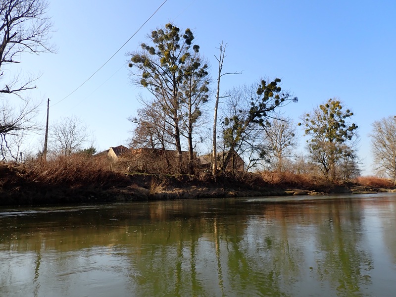 Niespełna godzinka sunięcia bez przeszkód donosi mnie do ujścia Bierawki za którym mijam most łączący Cisek z Bierawą a chwilę za nim opuszczone gospodarstwo, które dawno temu zostało opuszczone przez mieszkańców, zapewne ze strachu przed ewentualną kolejną wielką wodą, a które wydaje mi się posłużyło nam jako przechowalnia kajaków podczas pierwszego mojego spływu tym odcinkiem z kumplami z Jastrzębia Zdroju na początku lat dziewięćdziesiątych, który właśnie w tym miejscu przerwaliśmy z powodu dużej wody 🙁