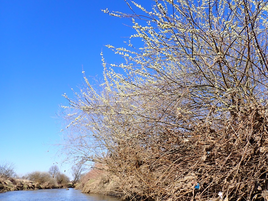 Ponad godzinę zajmuje mi płynięcie po nie zmienionym krajobrazie by po dojrzeniu prawdziwych śladów wiosny, czyli bazi na drzewie dotrzeć do kolejnego mostu szybkiej drogi nr 44 będącej łącznikiem S1 z obwodnicą Oświęcimia, tuż za ujściem Pszczynki.