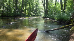 Kąpiel w przejrzystej wodzie, odwiedziny kaczej rodzinki jedzącej nam prawie z ręki i wreszcie odpoczynek. Za nami prawie 90 km. 🙂