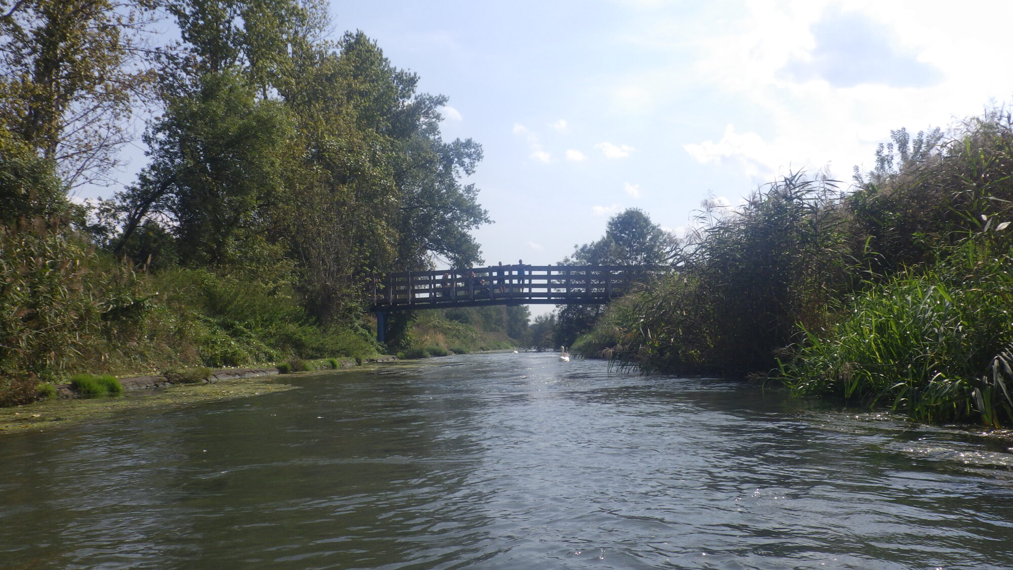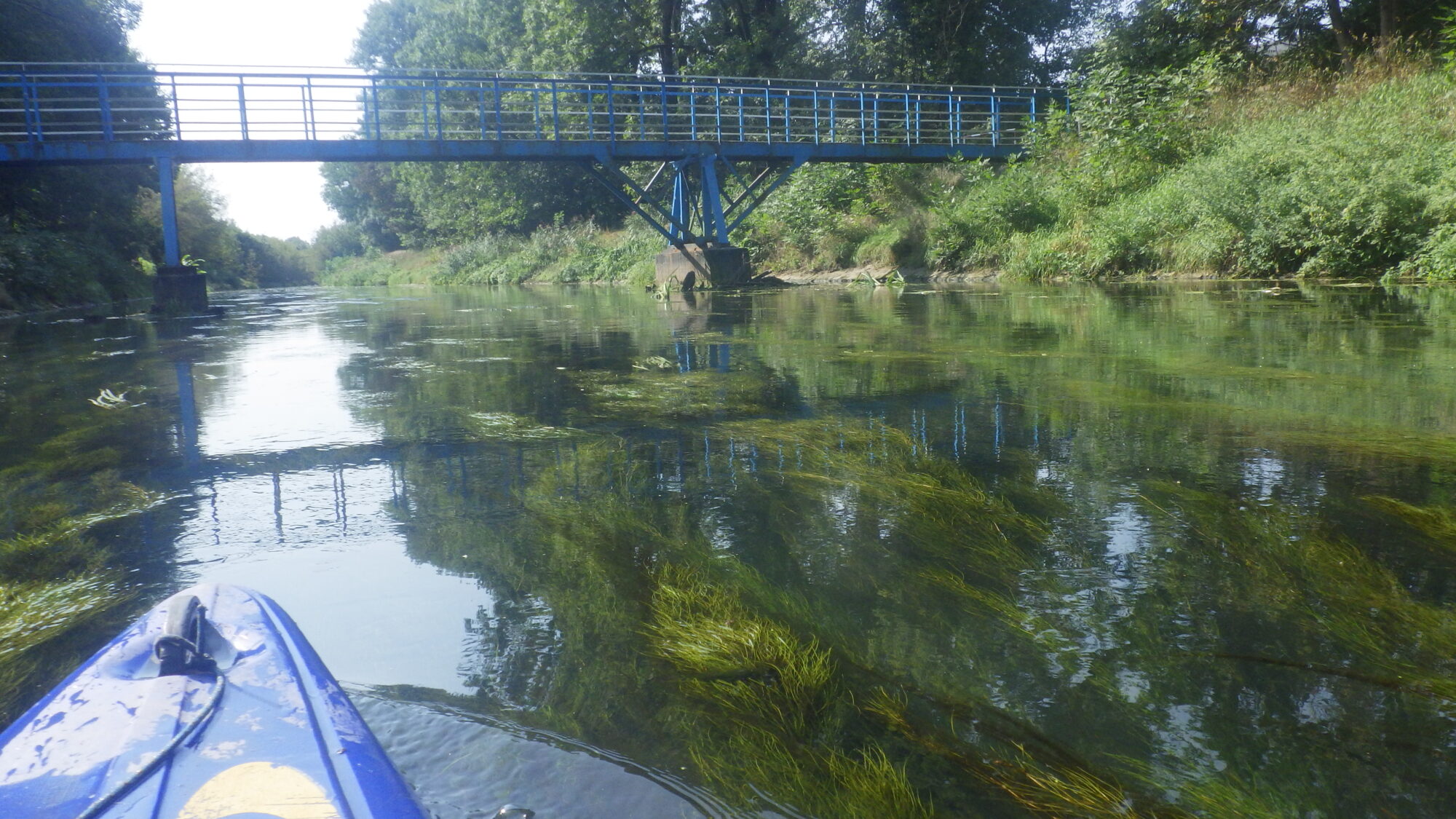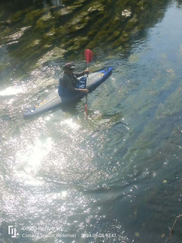 W niedzielę po pracowitej sobocie nie bardzo chciało mi się ruszyć, ale po pierwsze – podobno to ostatni tak ładny i ciepły dzień tego lata, po drugie – powinienem rozruszać „mięśnie kajakowe”, bo dawno w kajaku nie siedziałem, a za sześć dni jadę na wyścig po zalewie Sosina w Jaworznie i to nie jak w ostatnich latach w mikście, a niestety w jedynce. Niestety, bo jedynki dla wszystkich chętnych takie same, a ja w takich jeszcze nie siedziałem :-(. Zatem po 10,30 ruszam na Brynicy, jakieś 650 metrów od domu i płynę ku jej ujściu do Czarnej Przemszy.