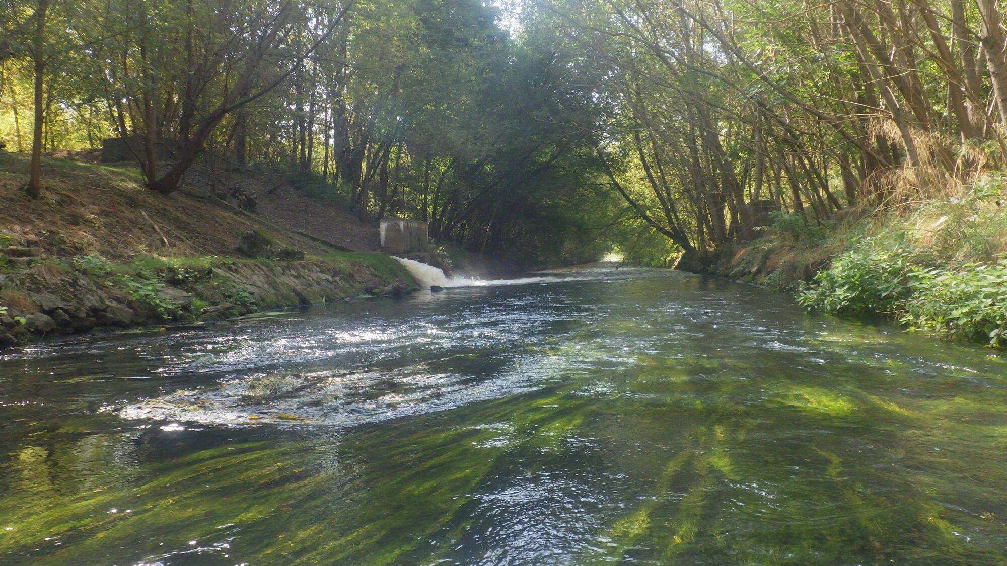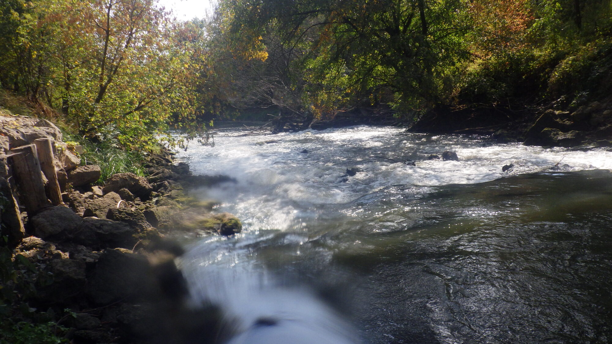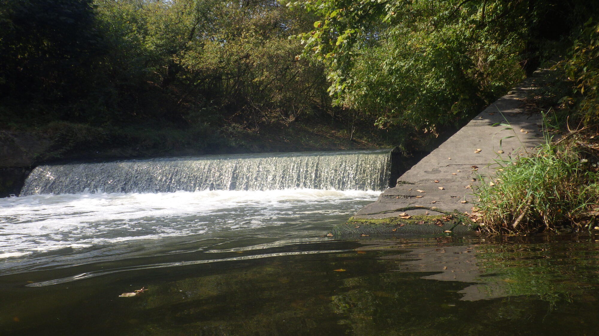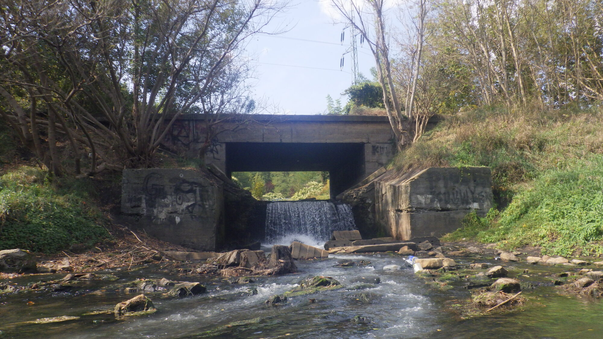 Próg przez który Brynica wpada do Czarnej Przemszy, obnoszę i po chwili przerwy ruszam dalej, prowadzony już tylko przez ojca łabędziej rodzinki. Zaczynają się kamieniste bystrza, a ten się nie poddaje ginąc momentami pod falami. Dopływamy razem do połączenia z Białą Przemszą , to blisko cztery kilometry i gdyby nie to, że zaplątał się w przybrzeżnej roślinności pewnie doholował by mnie do Wisły. Minąłem go a on wrócił do swoich. Po pół godzinie jestem pod mostem Wysoki Brzeg i po szybkim rekonesansie postanawiam obnieść. Przy okazji posilę się trochę i uzupełnię płyny. Ta woda nie pachnie najlepiej, dlatego nie mam ochoty na moczenie od szyi w dół, a tak mnie tu moczyło, gdy jeszcze tędy spływałem.